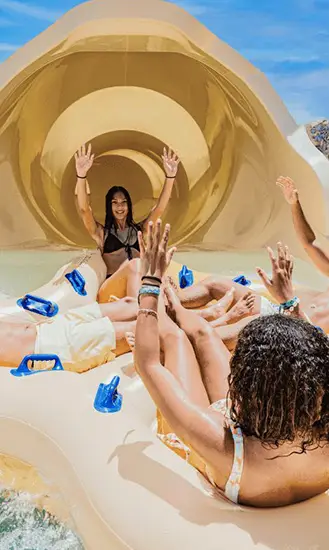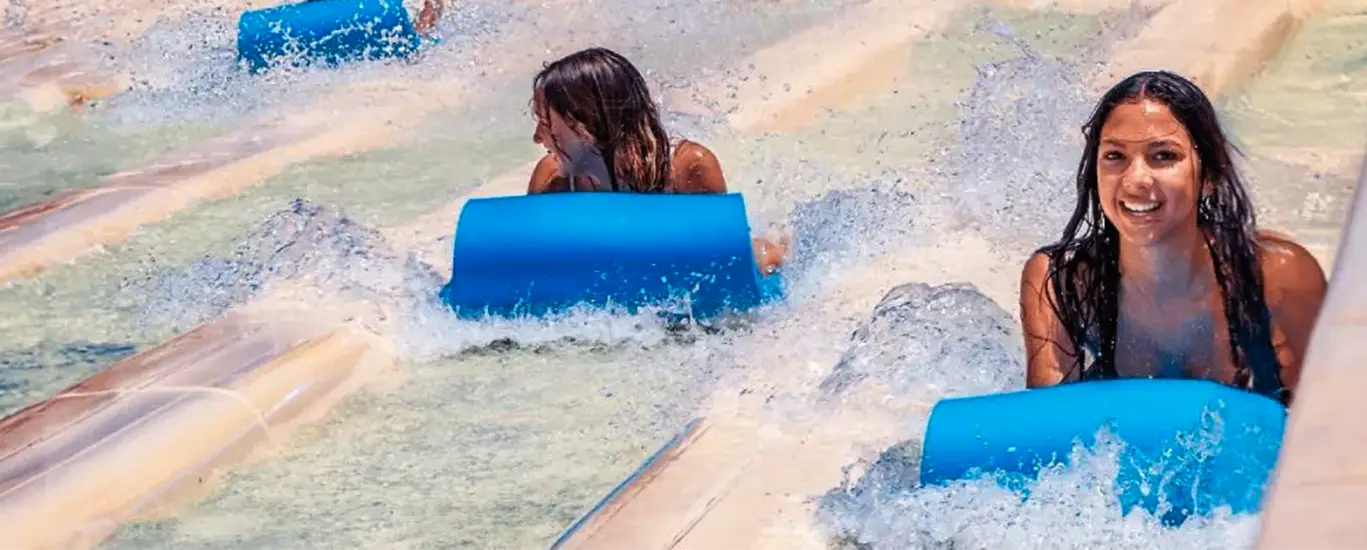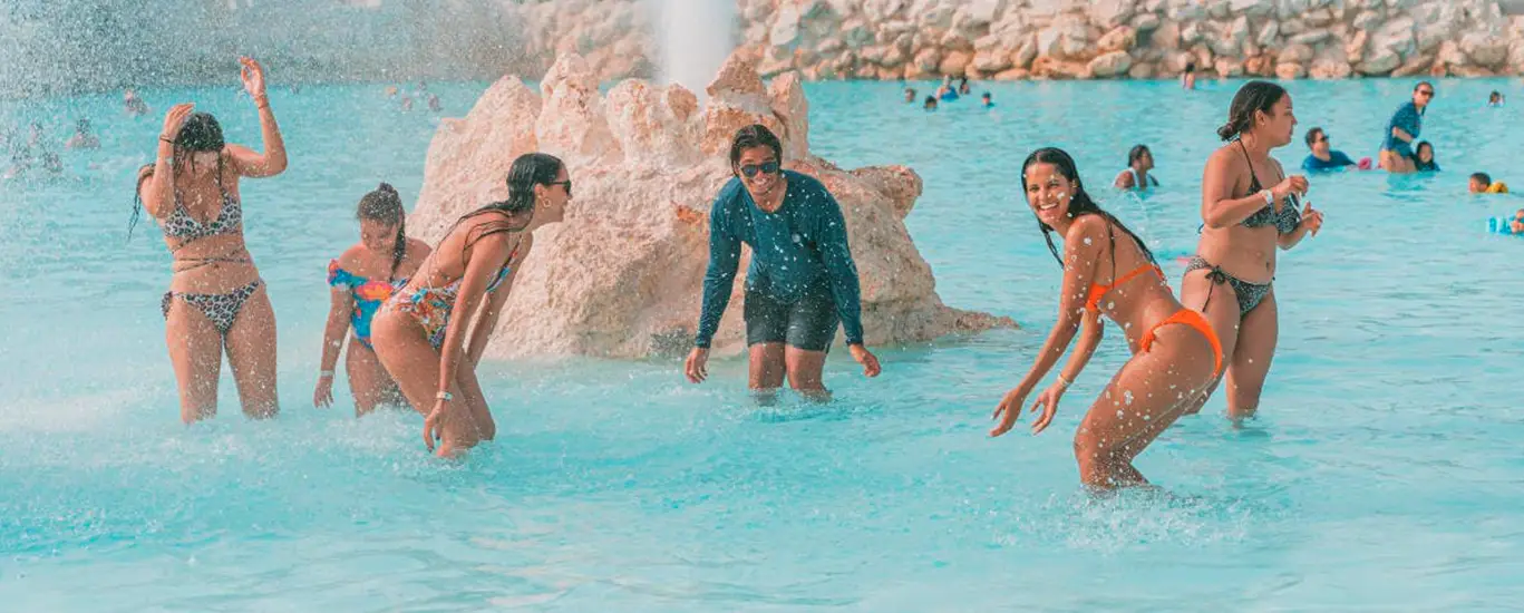 El parque está dividido en varias áreas donde encontrarás desde actividades de adrenalina como toboganes de alta intensidad o tirolina con aterrizaje en el agua, hasta experiencias más relajadas como ríos con flotadores, piscinas de olas o zonas tipo playa con hamacas. También podrás practicar snorkel en el Cañón Turquesa, disfrutar de atracciones en grupo o explorar espacios diseñados para niños, lo que lo convierte en un aquapark muy completo.